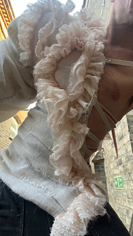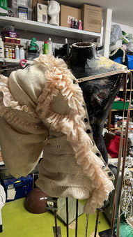 For the existing fragrances they wanted a look the distorted the human form, so I created an exaggerated arm from burlap, and a corset made from recycled gold leather to layer of the top (to be worn seperately or together)